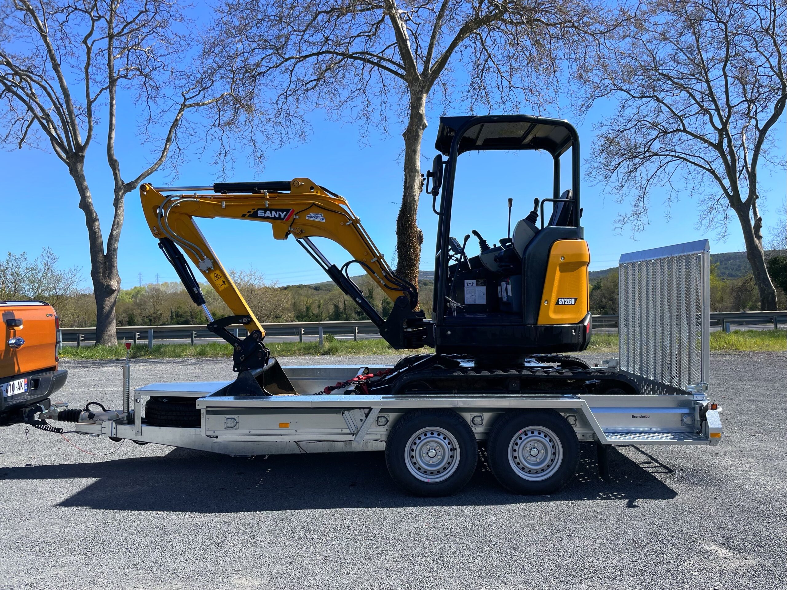 Transportez vos machines et équipements lourds en toute sécurité grâce à nos remorques porte-engins robustes et prêtes pour tous les terrains.